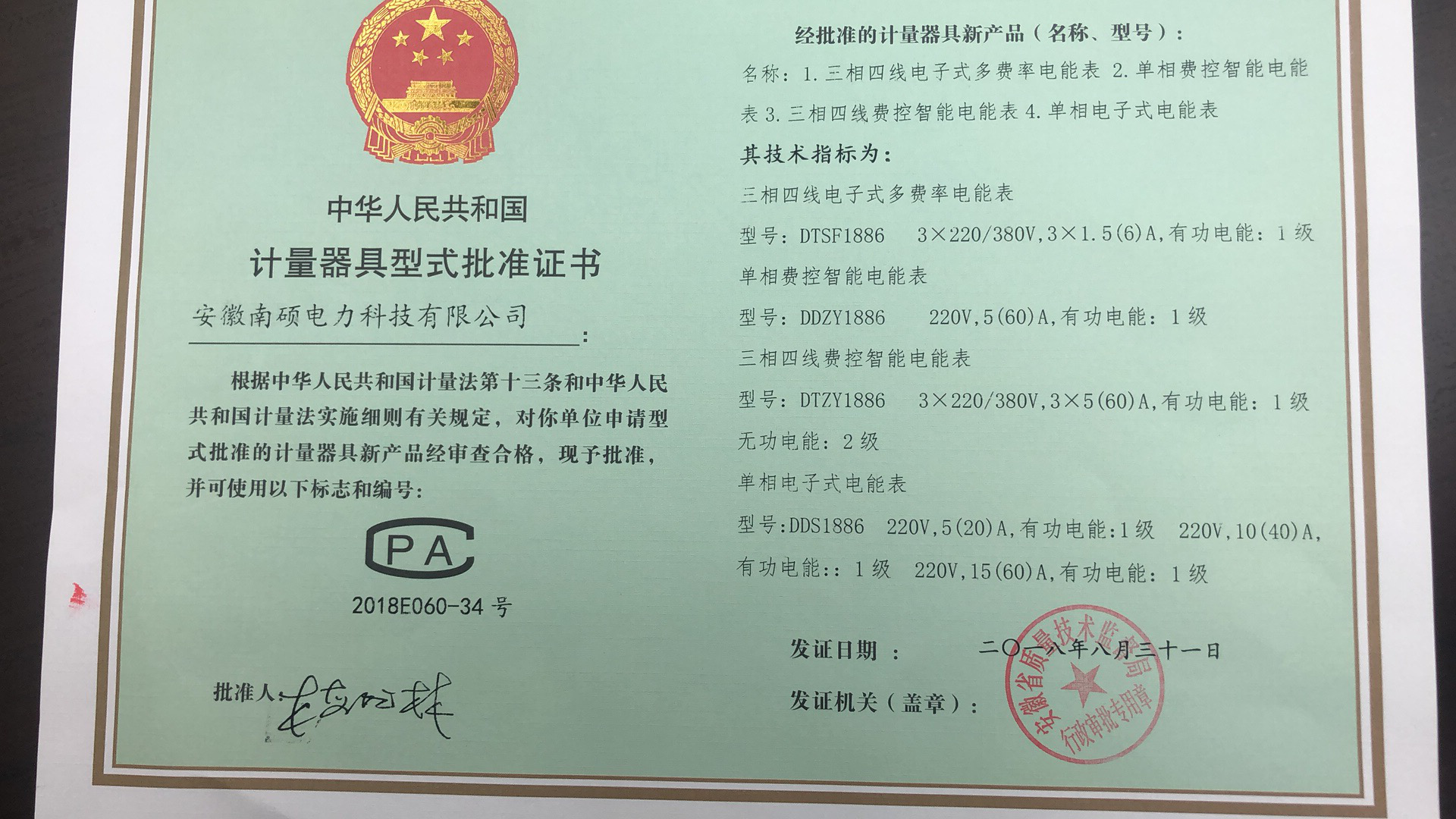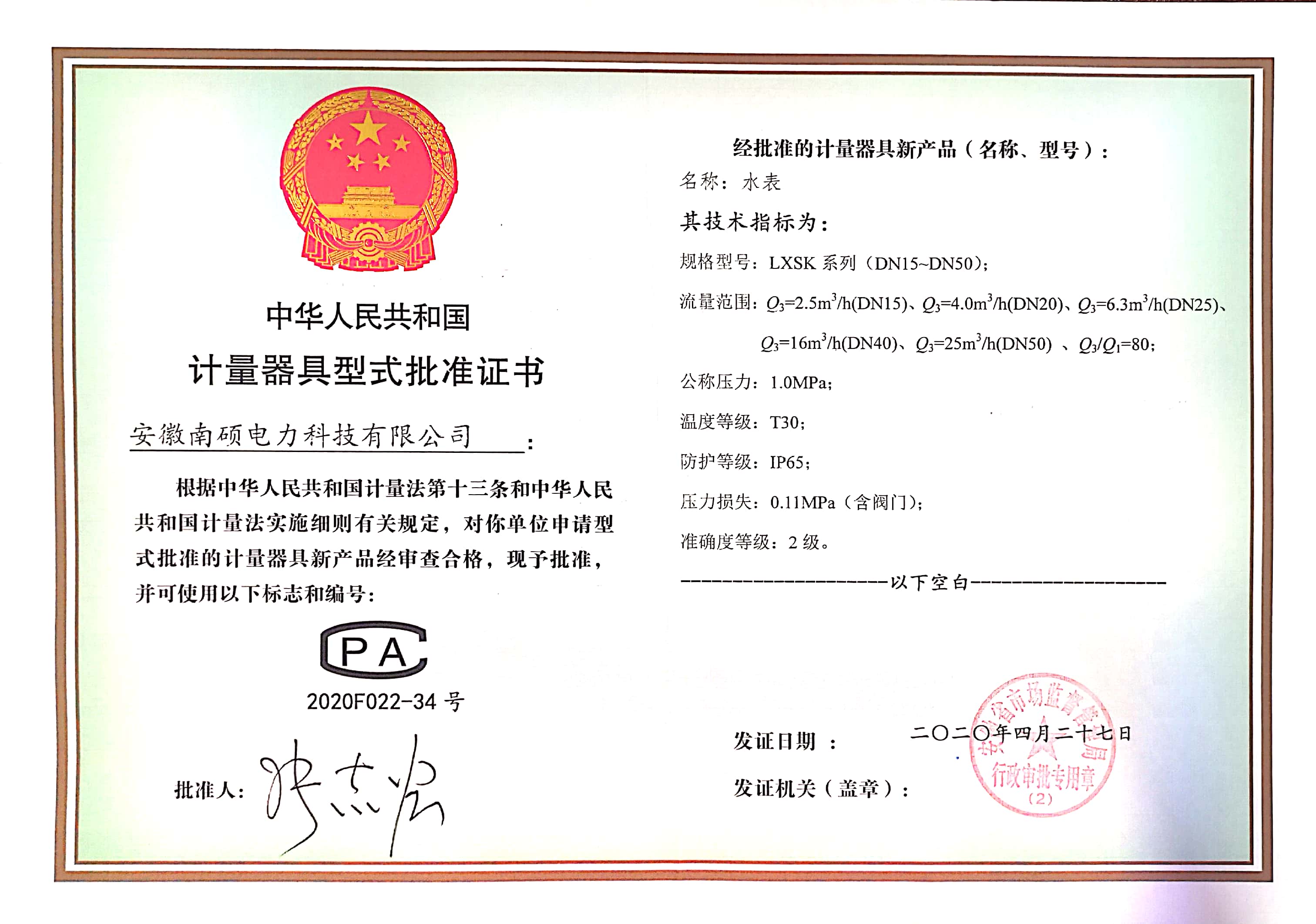 产品证书